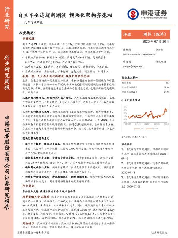【申港证券】【20200726】20200726-申港证券-汽车行业周报:自主车企追赶新潮流 模块化架构齐亮相-21页 行业研究