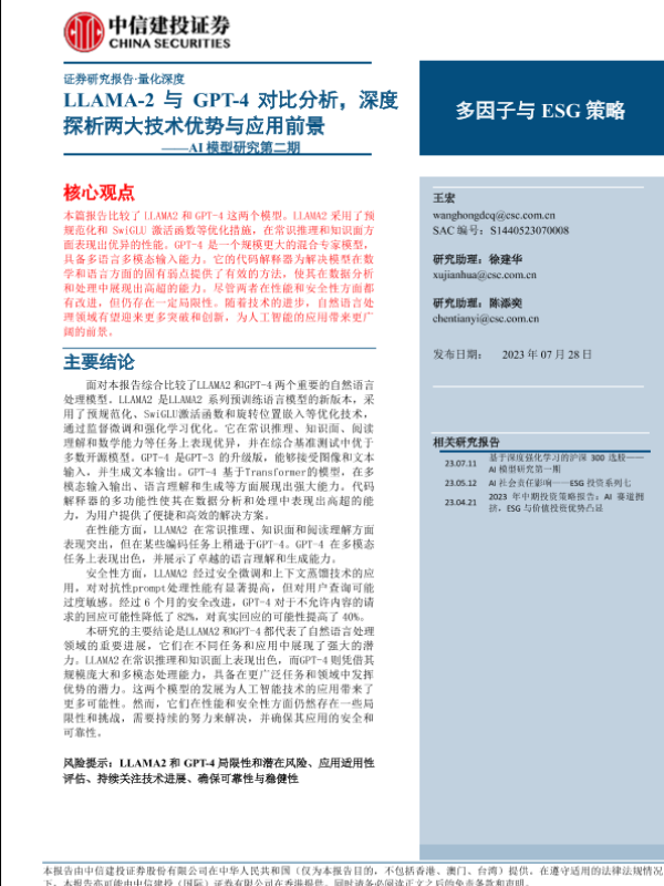 【中信建投证券】【20230728】AI模型研究第二期:LLAMA_2与GPT_4对比分析,深度探析两大技术优势与应用前景-32页 行业研究