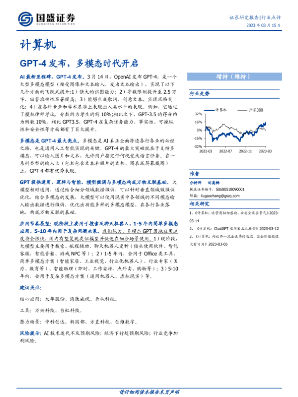【国盛证券】【20230315】计算机:GPT-4发布,多模态时代开启-10页 行业研究