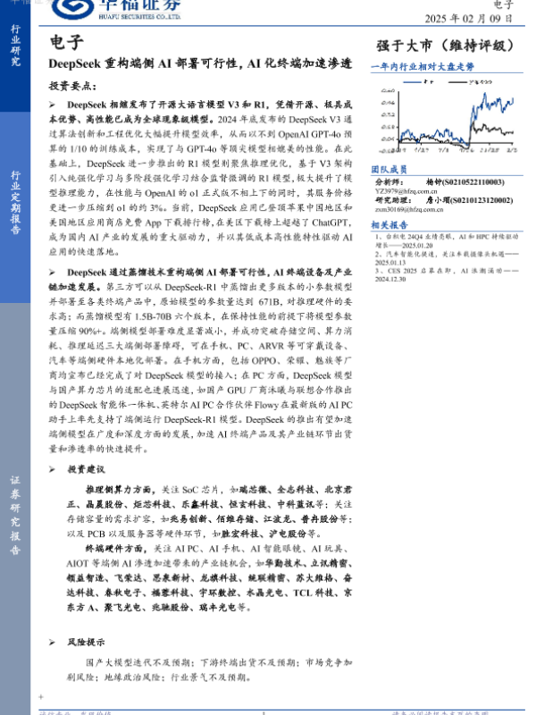 【华福证券】【20250209】DeepSeek重构端侧AI部署可行性,AI化终端加速渗透-16页 行业研究