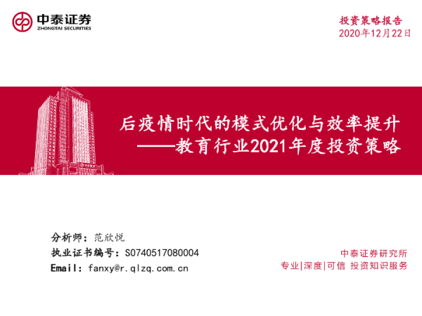 【中泰证券】【20201222】后疫情时代的模式优化与效率提升——教育行业2021年度投资策略-44页 行业研究