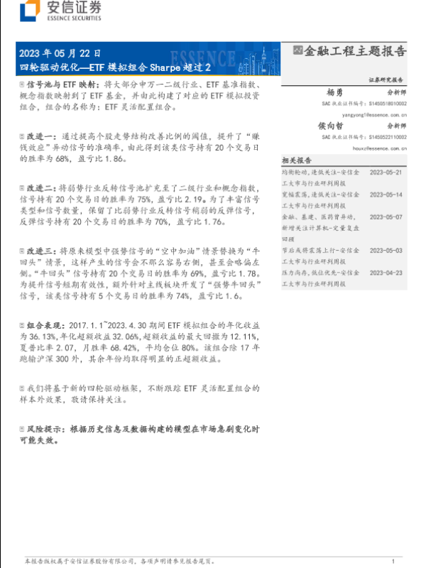 【安信证券】【20230522】金融工程主题报告:四轮驱动优化,ETF模拟组合Sharpe超过2-15页 行业研究