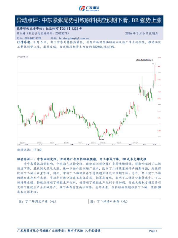【广发期货】【202603】异动点评:中东紧张局势引致原料供应预期下滑,BR强势上涨-4页 证券期货研究报告