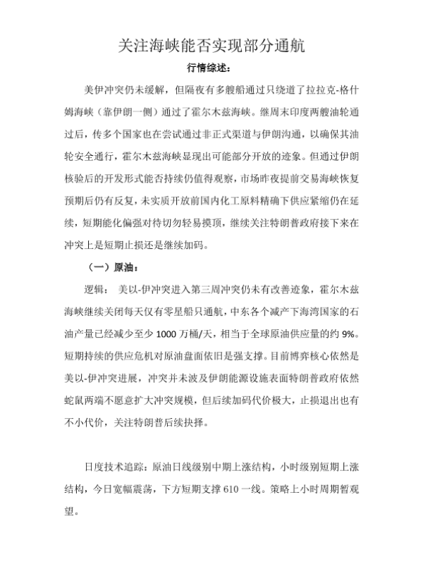【天富期货有限公司】【202603】关注海峡能否实现部分通航-13页 证券期货研究报告