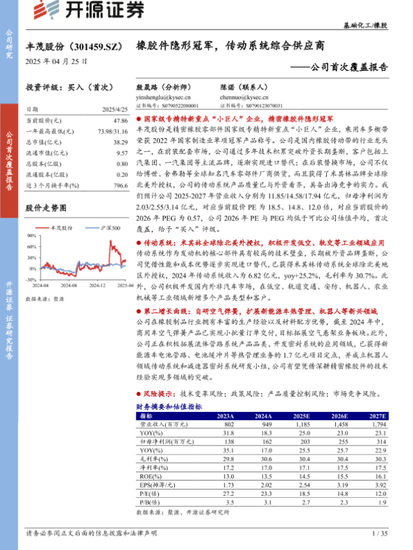 【开源证券】【20250425】丰茂股份公司首次覆盖报告:橡胶件隐形冠军,传动系统综合供应商-35页 公司研究