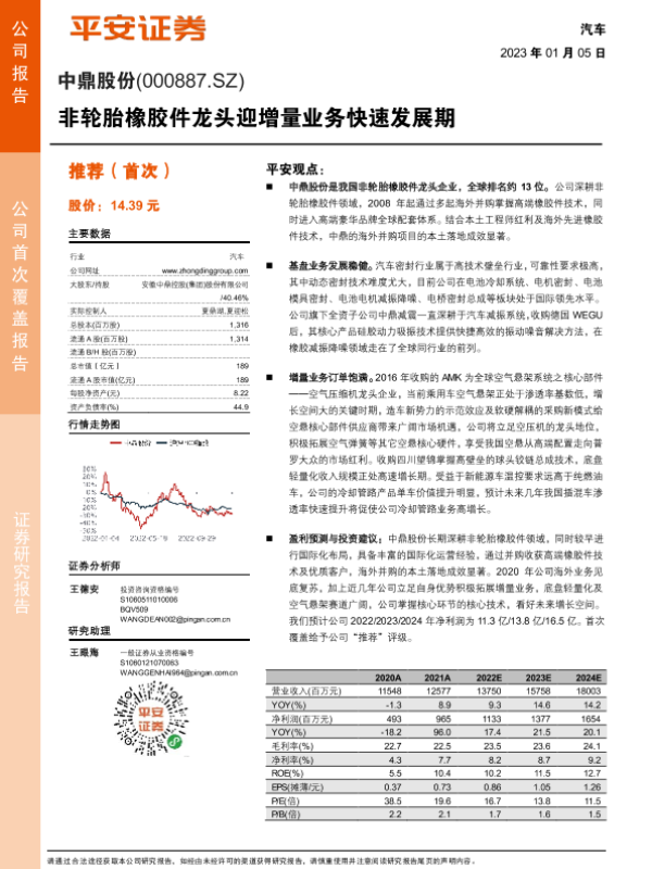 【平安证券】【20230105】深度报告-20230105-平安证券-中鼎股份-000887.SZ-非轮胎橡胶件龙头迎增量业务快速发展期-19页 行业研究