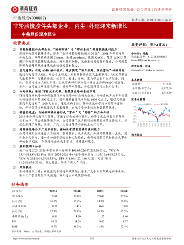 【浙商证券】【20240625】中鼎股份(000887)深度报告:非轮胎橡胶件头部企业,内生%2b外延迎来新增长-32页 行业研究