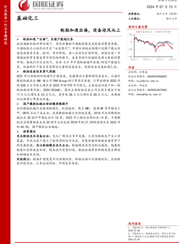 【国联证券】【20240715】基础化工:轮胎加速出海,设备迎风而上-12页 行业研究
