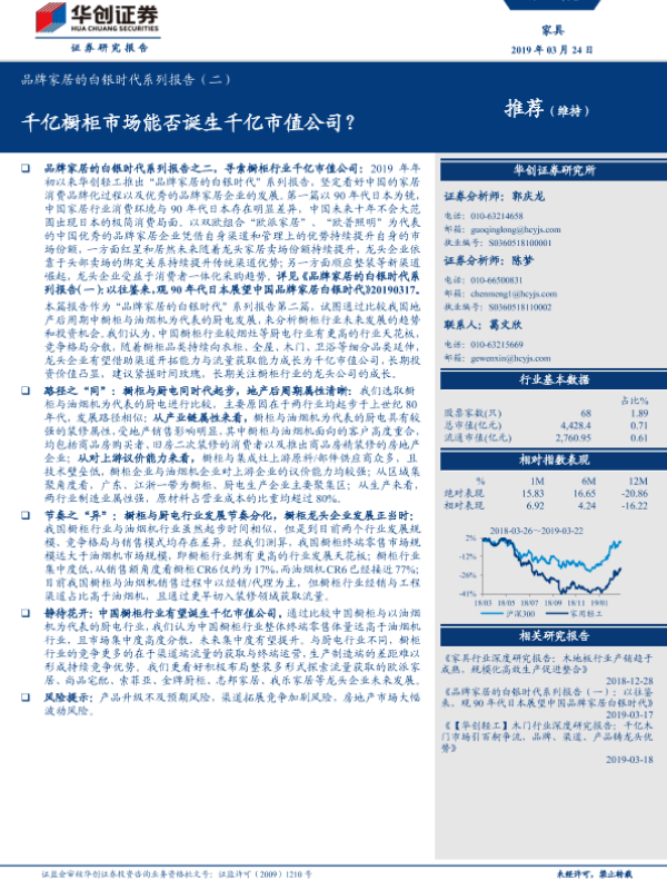 【华创证券】【20190324】品牌家居的白银时代系列报告(二):千亿橱柜市场能否诞生千亿市值公司?-22页 行业研究