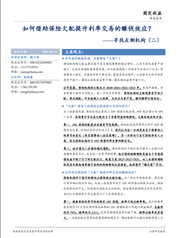 【华安证券】【20230814】寻找左侧机构(二):如何借助保险欠配提升利率交易的赚钱效应?-26页 行业研究