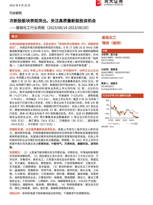 【光大证券】【20230820】基础化工行业周报:次新股板块表现突出,关注高质量新股投资机会-43页 行业研究