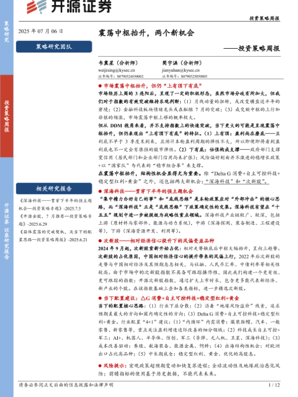 【开源证券】【20250706】震荡中枢抬升,两个新机会-12页 证券期货研究报告