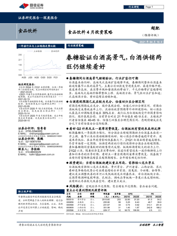 【国信证券】【20210416】食品饮料4月投资策略:春糖验证白酒高景气,白酒供销两旺仍继续看好-14页 行业研究