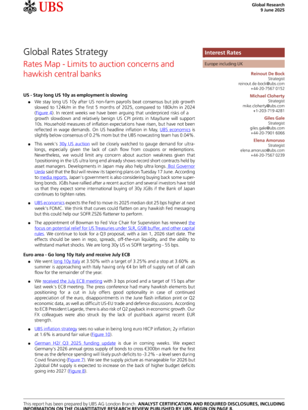 【UBS AG London Branch】【20250609】Rates Map - Limits to auction concerns and hawkish central banks-11页 宏观策略