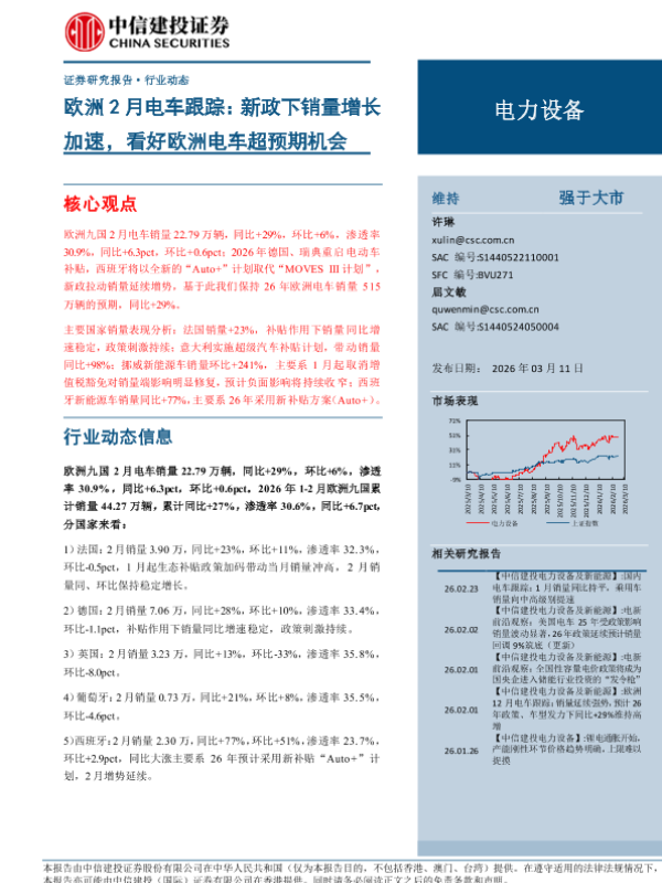 【中信建投证券】【202603】欧洲2月电车跟踪:新政下销量增长加速,看好欧洲电车超预期机会-30页 证券期货研究报告