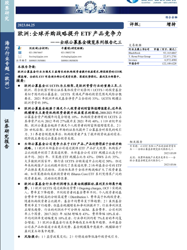 【国泰君安证券】【20230425】欧洲:全球并购战略提升ETF产品竞争力-18页 行业研究