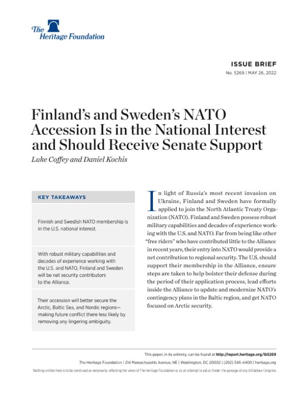 【The Heritage Foundation】【20220526】芬兰和瑞典加入北约符合国家利益,应该得到参议院的支持-8页 行业研究