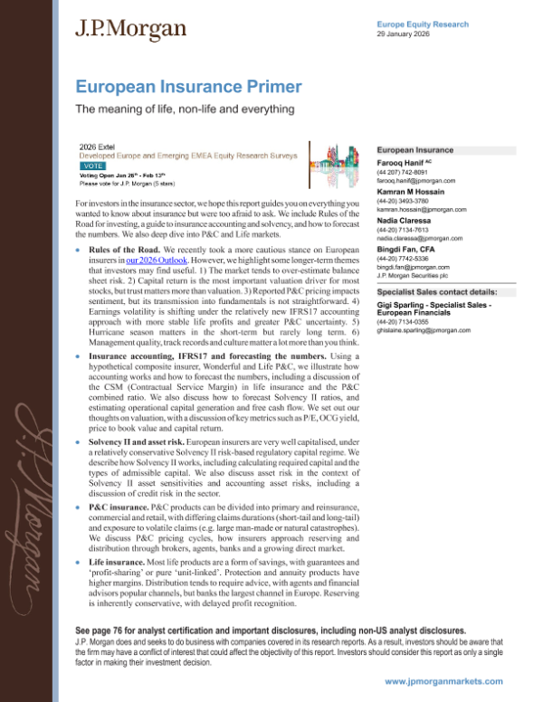 【J.P. Morgan】【202601】JPMorgan-European Insurance Primer The meaning of life, non-life and ...-80页 证券期货研究报告