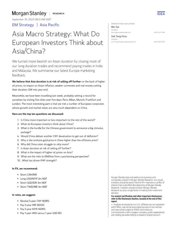 【Morgan Stanley】【202309】Asia Macro Strategy What Do European Investors Think about Asia/China?-16页 行业研究