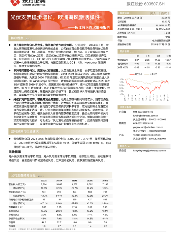 【东方证券】【20240707】振江股份(603507)首次覆盖报告:光伏支架稳步增长,欧洲海风激活弹性-34页 行业研究