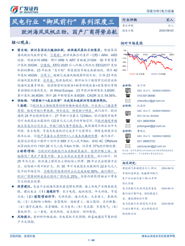 【广发证券】【20240903】风电行业“御风前行”系列深度三:欧洲海风风帆正劲,国产厂商得势启航-46页 行业研究