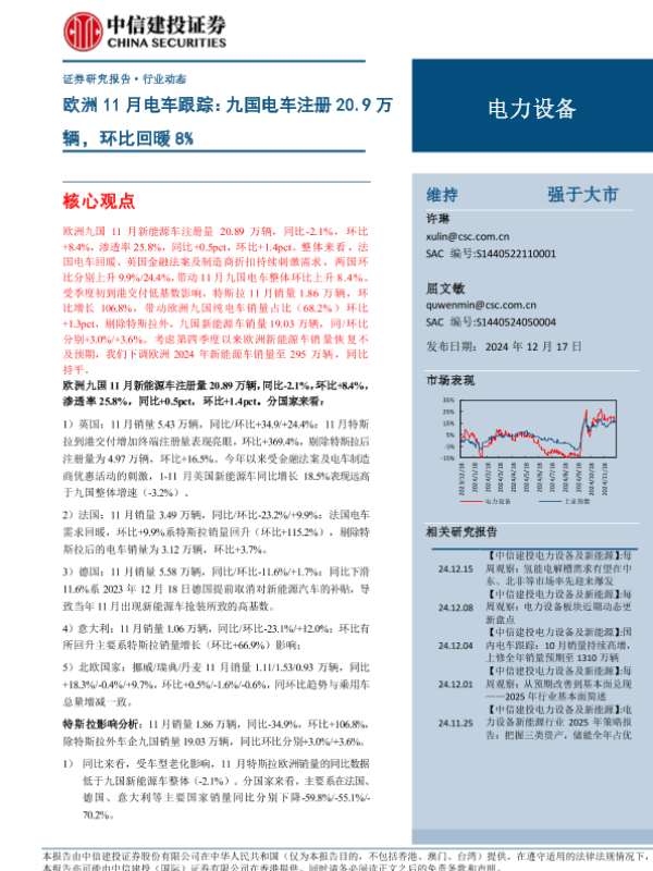 【中信建投证券】【20241217】电力设备行业欧洲11月电车跟踪:九国电车注册20.9万辆,环比回暖8%-24页 行业研究