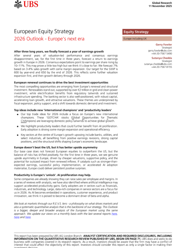 【UBS】【202511】欧洲股市策略2026展望 - 欧洲的新纪元-83页 证券期货研究报告