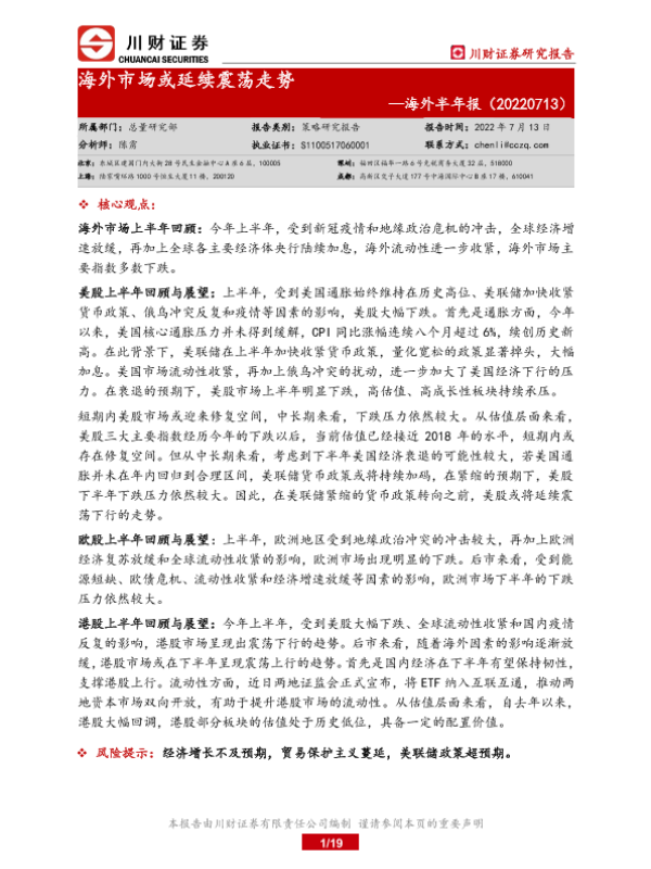 【川财证券】【20220713】海外半年报:海外市场或延续震荡走势-19页 宏观策略