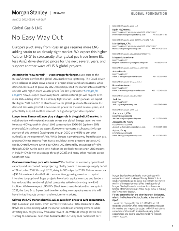 【Morgan Stanley】【20220412】全球天然气行业:没有简单的出路-27页 行业研究