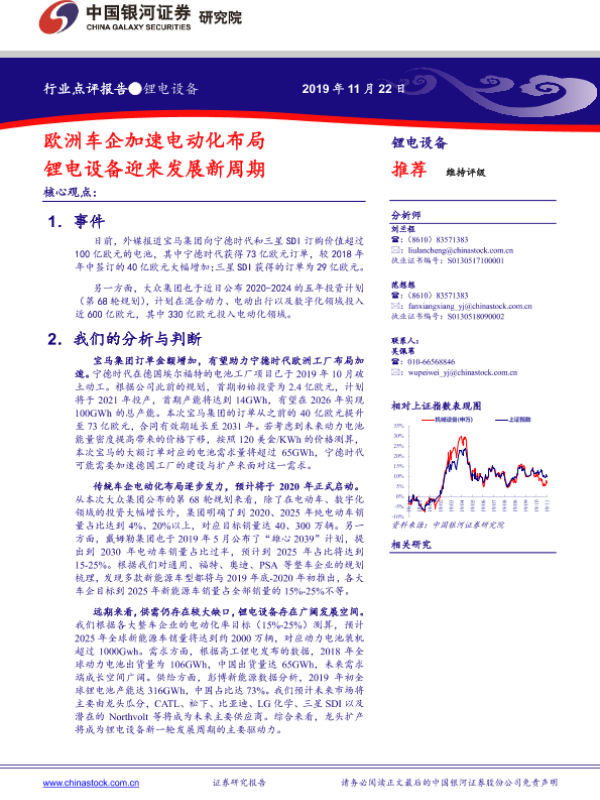【银河证券】【20191122】锂电设备行业点评报告:欧洲车企加速电动化布局 锂电设备迎来发展新周期-4页 行业研究
