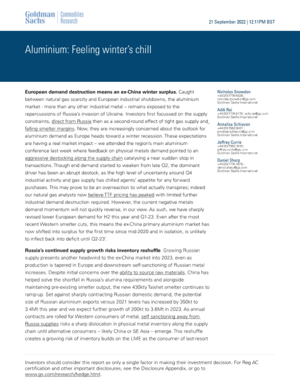 【Goldman Sachs】【20220921】Aluminium Feeling winter’s chill-14页 行业研究