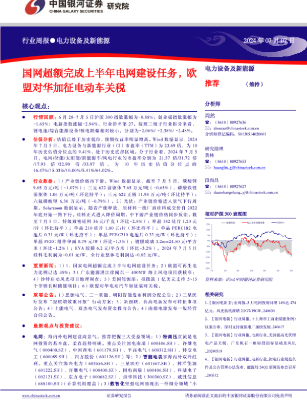 【银河证券】【20240707】电力设备及新能源行业周报:国网超额完成上半年电网建设任务,欧盟对华加征电动车关税-23页 行业研究