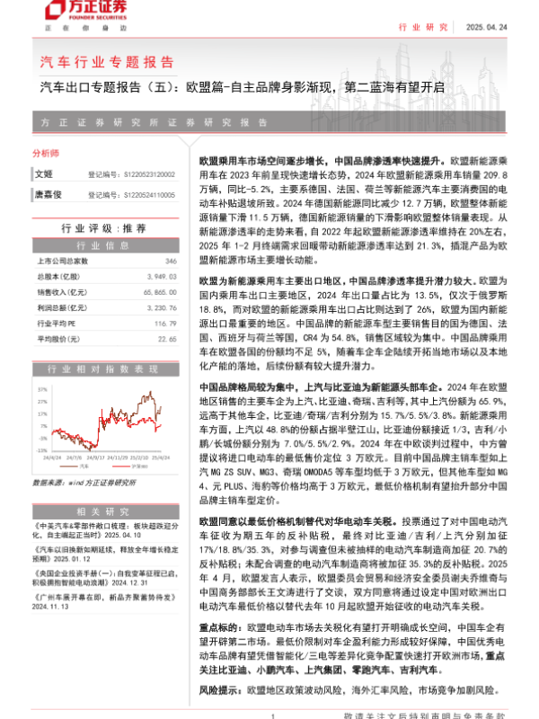 【方正证券】【20250424】汽车行业出口专题报告:欧盟篇-自主品牌身影渐现,第二蓝海有望开启-26页 行业研究