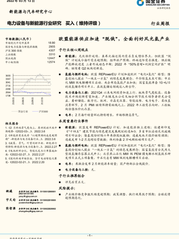 【国金证券】【20220313】电力设备与新能源行业研究:欧盟能源供应加速“脱俄”,全面利好风光氢产业-13页 行业研究