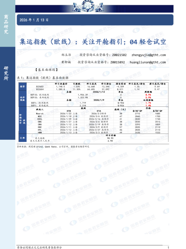 【国泰君安期货】【202601】集运指数(欧线):关注开舱指引;04轻仓试空-5页 证券期货研究报告