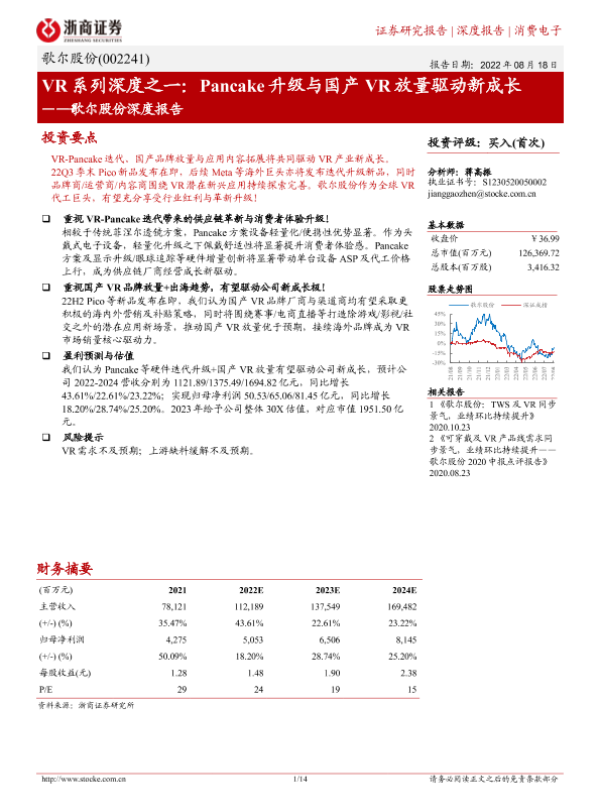 【浙商证券】【20220818】歌尔股份深度报告:VR系列深度之一:Pancake升级与国产VR放量驱动新成长-14页 行业研究