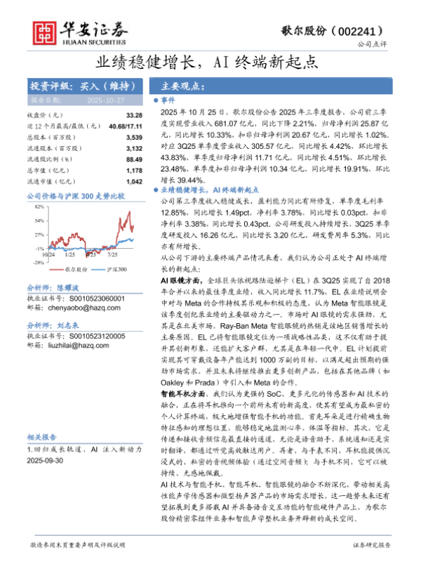【华安证券】【202510】业绩稳健增长,AI终端新起点-4页 证券期货研究报告