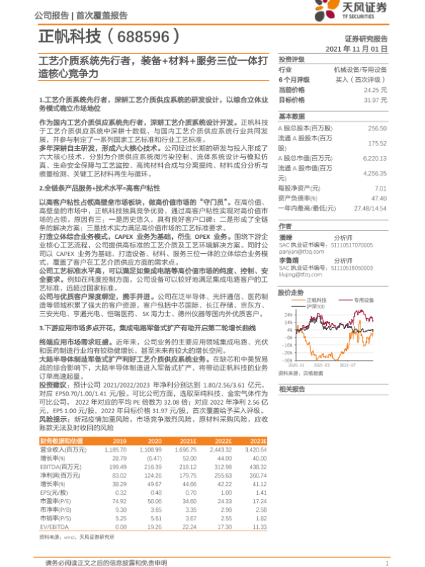 【天风证券】【20211101】正帆科技-688596.SH-工艺介质系统先行者,装备+材料+服务三位一体打造核心竞争力-28页 行业研究