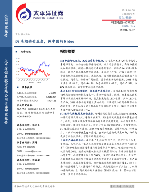 【太平洋证券】【20190630】5G浪潮的受益者,做中国的Nidec-40页 行业研究