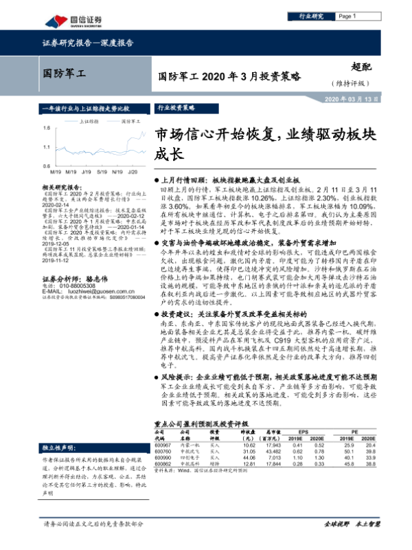 【国信证券】【20200313】国防军工2020年3月投资策略:市场信心开始恢复,业绩驱动板块成长-10页 行业研究