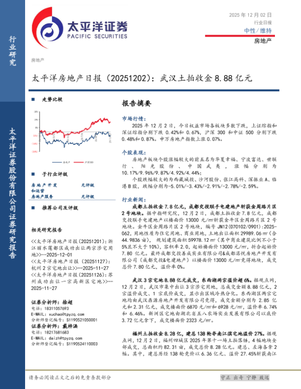 【太平洋证券】【202512】太平洋房地产日报(20251202):武汉土拍收金 8.88亿元-4页 行业研究