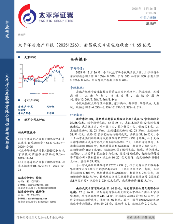【太平洋证券】【202512】太平洋房地产日报(20251226):南昌成交 4宗宅地收金 11.65亿元-4页 行业研究