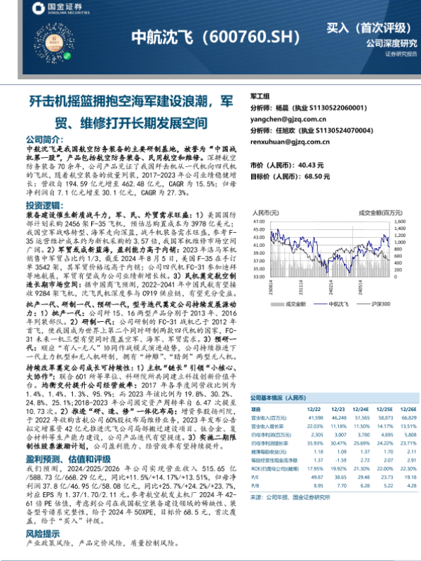 【国金证券】【20240813】中航沈飞(600760)歼击机摇篮拥抱空海军建设浪潮,军贸、维修打开长期发展空间-39页 行业研究