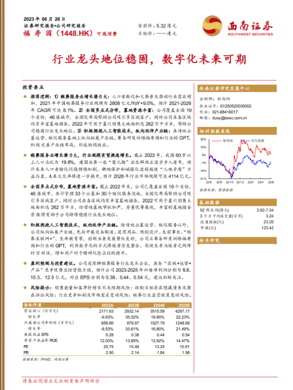 【西南证券】【20230626】福寿园(01448)行业龙头地位稳固,数字化未来可期-34页 行业研究