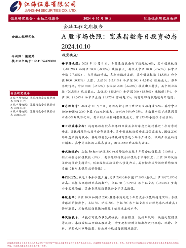 【江海证券】【20241010】A股市场快照:宽基指数每日投资动态-11页 行业研究