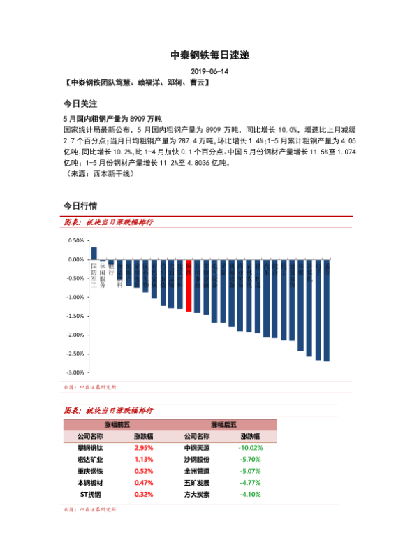 【中泰证券】【20190614】20190614-中泰证券-中泰钢铁每日速递-5页 行业研究