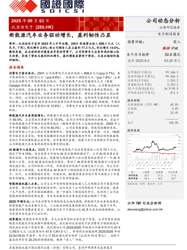 【东吴证券】【2025】比亚迪电子-新能源汽车业务驱动增长,盈利韧性凸显-4页 证券期货研究报告