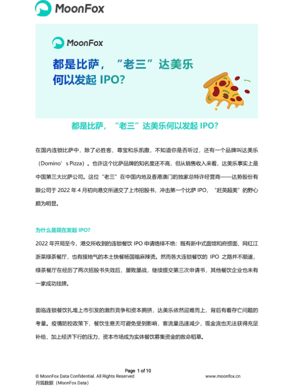 【月狐数据(MoonFox Data)】【202204】都是比萨,“老三”达美乐何以发起IPO?-10页 行业研究