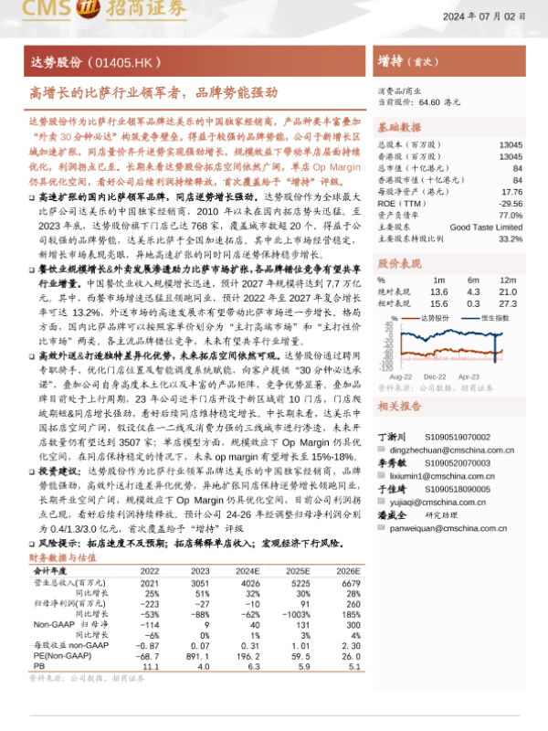 【海通证券】【20240702】达势股份(01405.HK)高增长的比萨行业领军者,品牌势能强劲-31页 行业研究