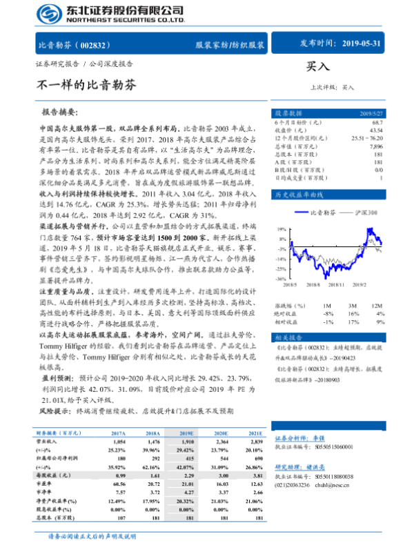 【东北证券】【20190531】不一样的比音勒芬-30页 行业研究